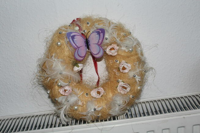 DO SPRZEDANIA wianek wiosenny z motylkiem i różyczkami - a szeroki 30 cm - polecam